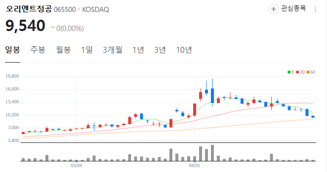 | 오리엔트정공 | 9,540원 | 19,220원 | 998원 | 반등 시도 | 테마주 관심 지속 |