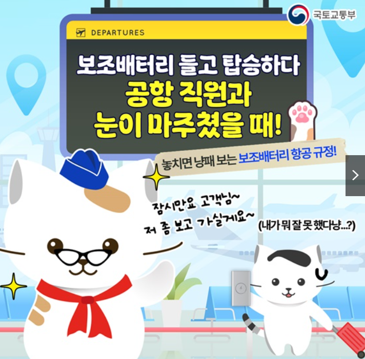 - 탑승 전 보안 검색대에서 적발될 경우, 해당 배터리를 폐기해야 할 수도 있음