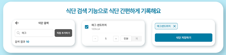 식단 검색 기능 추가: 사용자가 원하는 음식의 영양 정보를 쉽게 검색하고 건강한 식단을 계획할 수 있도록 개선됨