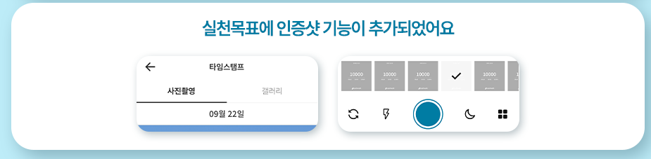 실천 목표 인증샷 기능 추가: 건강 목표 달성을 기록할 수 있도록 인증샷 기능이 추가되어 동기 부여 효과 증가